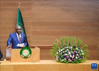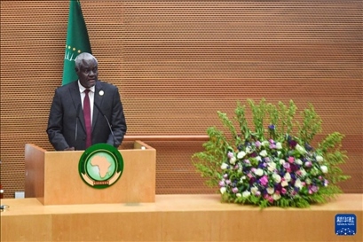 2月17日,在埃塞俄比亞首都亞的斯亞貝巴,非盟委員會(huì)主席法基在開(kāi)幕式上發(fā)言。新華社發(fā)(邁克爾·特韋爾德攝)