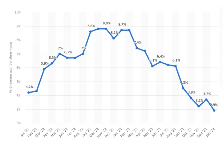 △ 德國(guó)通脹率變化曲線(xiàn)(圖片來(lái)源:Statista)