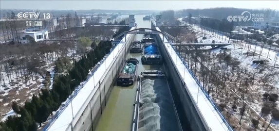 在京杭運河棗莊段的臺兒莊船閘,節(jié)后出現(xiàn)了少有的繁忙景象。河面上各類船舶往返穿梭,現(xiàn)在一天大約有200多艘貨船通過。