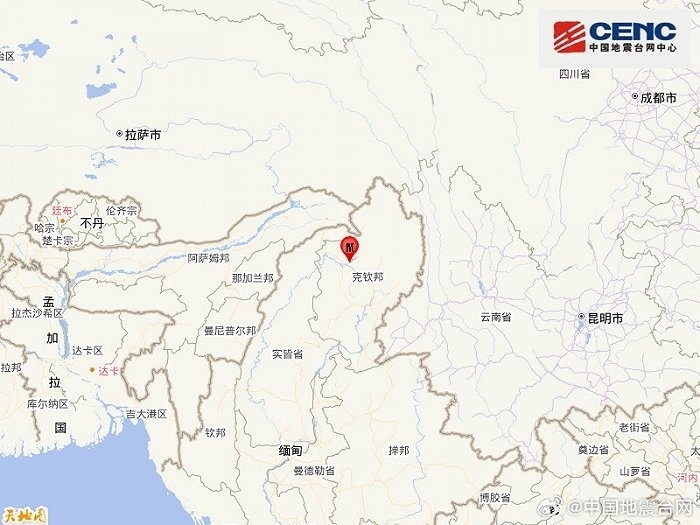 央視網消息:據@中國地震臺網速報 微博消息,中國地震臺網正式測定:04月05日20時45分在緬甸(北緯26.41度,東經96.92度)發(fā)生5.6級地震,震源深度10千米。