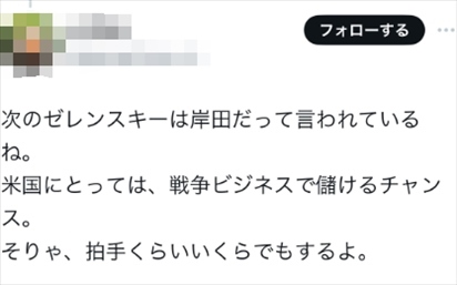還有人說道:“有人說下一個澤連斯基是岸田。對美國來說,戰(zhàn)爭是賺錢的時機,掌聲還是會給你的?!?/p>