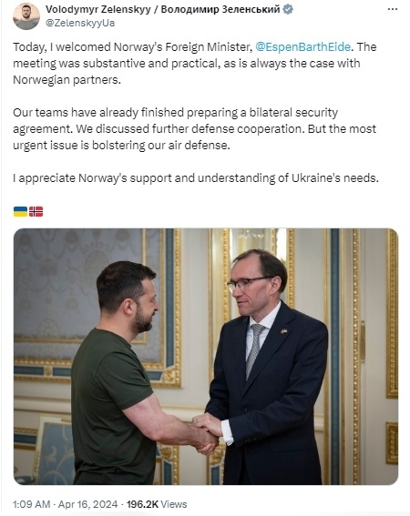 據(jù)報道,挪威外交部長艾德在基輔會見澤連斯基后表示:“挪威將向烏克蘭提供長期的軍事、政治、財政和人道主義支持。”