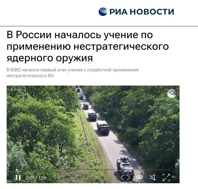 中新網(wǎng)5月22日電 綜合俄媒報道,俄國防部當?shù)貢r間21日表示,俄羅斯已開始第一階段的非戰(zhàn)略核力量演習,就準備使用非戰(zhàn)略核武器進行實際演練。