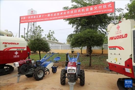 5月31日,中科農(nóng)業(yè)設(shè)備和稻種交接儀式在格格杜墾區(qū)舉行。中國援科特迪瓦農(nóng)業(yè)技術(shù)合作組組長郭長友告訴新華社記者:“我們這次為科特迪瓦的水稻種植戶帶來了聯(lián)合收割機(jī)、水稻精選機(jī)、小型碾米機(jī)、東方紅拖拉機(jī)等先進(jìn)農(nóng)業(yè)設(shè)備,還有10噸稻種,希望助力科特迪瓦水稻行業(yè)發(fā)展,幫助科特迪瓦早日實(shí)現(xiàn)水稻自給自足?!?/p>