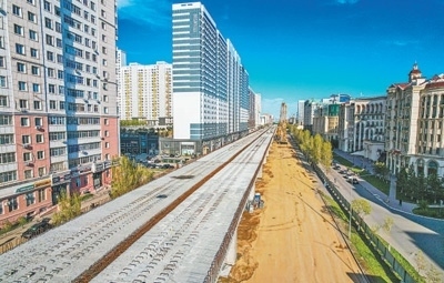 哈薩克斯坦阿斯塔納市輕軌是中亞地區(qū)首條城市輕軌線路,途經(jīng)努爾蘇丹國際機(jī)場、納扎爾巴耶夫大學(xué)、世博園、總統(tǒng)府、新火車站等阿斯塔納市地標(biāo)建筑和重點(diǎn)功能區(qū),全長22.4公里。中國企業(yè)中建六局承建了其中的18.34公里,共計9個車站及14個區(qū)間。該輕軌項(xiàng)目建成通車之后,線路兩端的通勤時間可以縮短近一半,將成為哈薩克斯坦乃至中亞地區(qū)最具技術(shù)代表性的城市軌道交通項(xiàng)目。目前該項(xiàng)目建設(shè)正在穩(wěn)步推進(jìn)中。