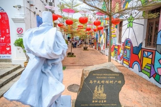 這是2019年12月20日在馬來西亞馬六甲拍攝的鄭和·朵云軒(馬六甲)藝術(shù)館外的馬中友好植樹廣場。600多年前,鄭和五次駐節(jié)馬六甲,由他帶到這片土地上的中華文化如今已深深融入當(dāng)?shù)囟嘣幕小P氯A社記者朱煒攝