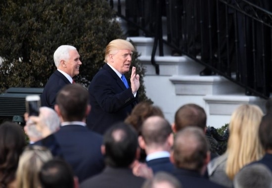 2017年12月20日,在美國華盛頓白宮,時任美國總統(tǒng)特朗普(右)和副總統(tǒng)彭斯準(zhǔn)備就國會通過稅改法案發(fā)表講話。新華社記者殷博古攝