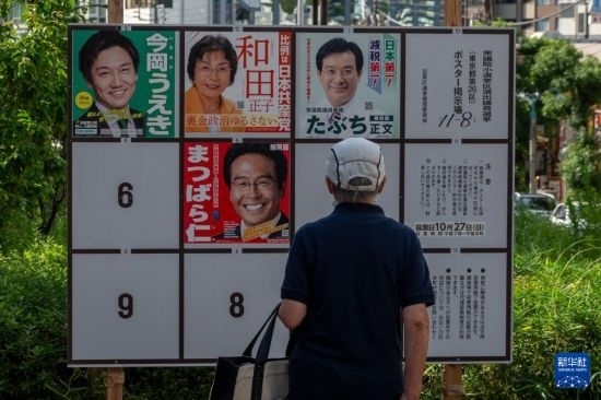 10月15日,一位行人在觀看日本東京的一處眾議院議員選舉公示板。新華社記者 張笑宇 攝