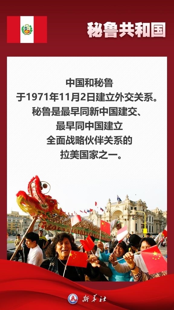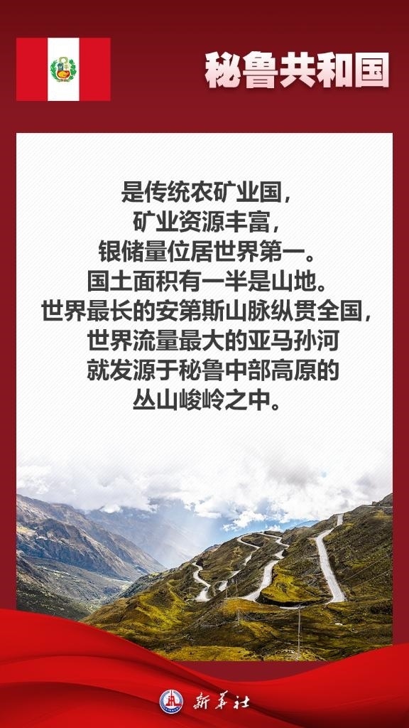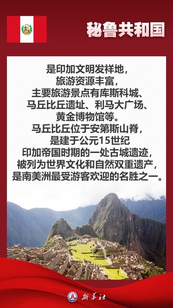 應(yīng)秘魯共和國(guó)總統(tǒng)博魯阿爾特邀請(qǐng),國(guó)家主席習(xí)近平將于11月13日至17日赴利馬出席亞太經(jīng)合組織第三十一次領(lǐng)導(dǎo)人非正式會(huì)議并對(duì)秘魯進(jìn)行國(guó)事訪問。秘魯位于南美洲西部,是印加文明發(fā)祥地,也是最早同新中國(guó)建交的拉美國(guó)家之一。關(guān)于秘魯,七張海報(bào)帶你了解更多——