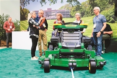 圖為在美國(guó)拉斯維加斯消費(fèi)電子展上,人們觀看一款農(nóng)用車輛。
