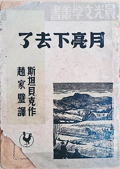 趙家璧在20世紀(jì)30年代就對(duì)美國(guó)文學(xué)很感興趣,讀過斯坦貝克的《人鼠之間》《憤怒的葡萄》。1942年,他在桂林看到了《月亮下去了》,很快就讀完了,作品中侵略者的橫行霸道,淪陷區(qū)人民的不屈抵抗,讓他覺得這講的簡(jiǎn)直就是中國(guó)淪陷區(qū)的事,遂對(duì)作品全文進(jìn)行了翻譯。該譯本問世后再版多次,影響了一代又一代讀者。