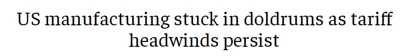 此外,印度《經(jīng)濟時報》2日發(fā)表題為《關(guān)稅阻力持續(xù)存在 美國制造業(yè)陷入低迷》的文章。文章指出,11月,美國制造業(yè)連續(xù)第九個月萎縮,工廠面臨訂單下滑和原材料價格上漲的雙重困境,進口關(guān)稅的拖累持續(xù)存在。