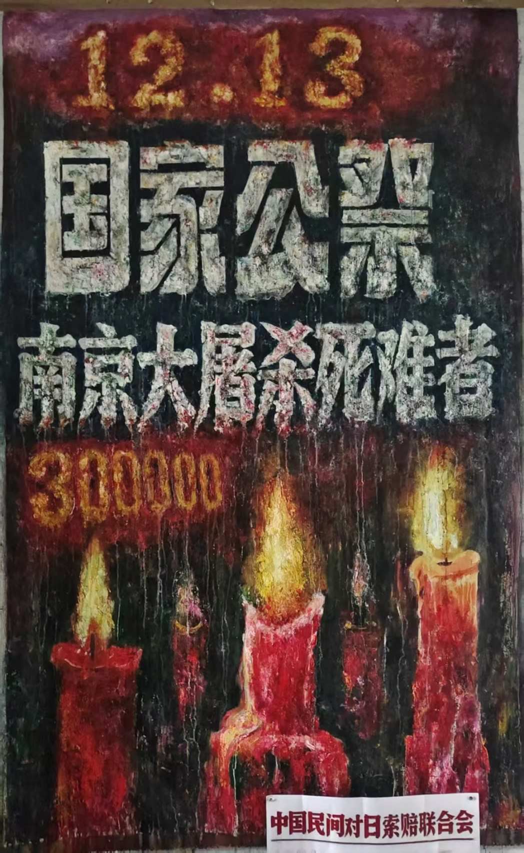 隨信附上的四張圖片為中國(guó)民間對(duì)日索賠聯(lián)合會(huì)志愿者、重慶畫家李云創(chuàng)作的油畫照片,畫家30年來一直在研究南京大屠殺歷史,已創(chuàng)作反映南京大屠殺歷史事實(shí)的油畫作品共200多幅,將擇機(jī)對(duì)外展示,力圖以畫筆向全社會(huì)講述、宣傳南京大屠殺暴行。