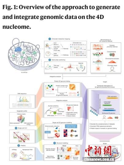 該論文介紹,人類染色體的三維組織結(jié)構(gòu),對于協(xié)調(diào)遺傳物質(zhì)調(diào)控生物反應(yīng)過程起到重要作用。DNA纏繞組蛋白形成名為染色質(zhì)的復(fù)合體,存儲在細胞核內(nèi)。大量染色質(zhì)位點可通過生物化學修飾來調(diào)控基因表達。繪制這一三維結(jié)構(gòu)及其如何經(jīng)時(第四維度)改變的工作,被稱為4D核組學。