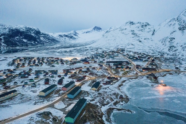 這是2025年3月21日拍攝的丹麥自治領(lǐng)地格陵蘭島納爾薩克鎮(zhèn)(無(wú)人機(jī)照片)。新華社記者彭子洋攝