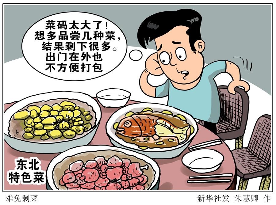 前不久從廣東來吉林旅游的張文奇體驗(yàn)了鍋包肉、鐵鍋燉魚等東北特色菜,喜愛的同時他忍不住吐槽:“菜碼太大了!想多品嘗幾種菜,結(jié)果剩下很多。出門在外也不方便打包?!?/p>