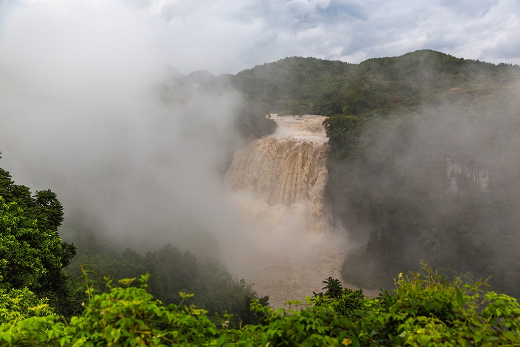 受強降雨影響,貴州黃果樹瀑布迎來2020年入汛以來最大水量,黃果樹瀑布水勢磅礴。陳熙/攝