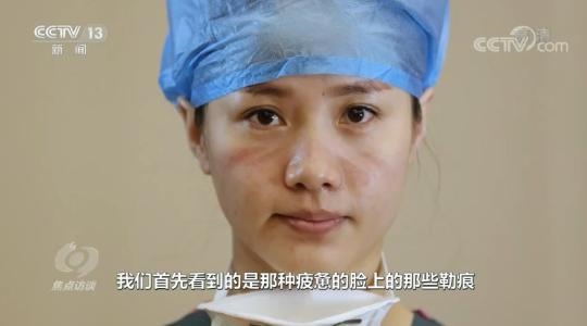 中國文聯(lián)第十一次全國代表大會代表、中國攝影家協(xié)會主席李舸說:“摘下口罩那一下,我們首先看到的是疲憊的臉上的那些勒痕,甚至有很多都是破的傷口,但是他們用很簡單的方法處理,那種堅毅的眼神讓我們感觸特別深。”