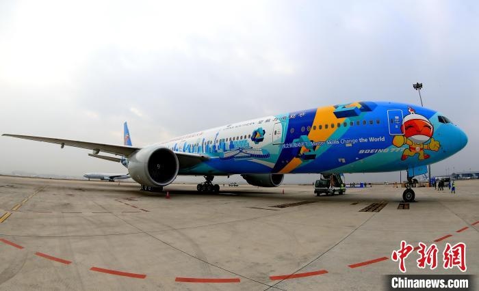 全球首架世界技能大賽主題彩繪飛機(jī)成功首航 南方航空供圖