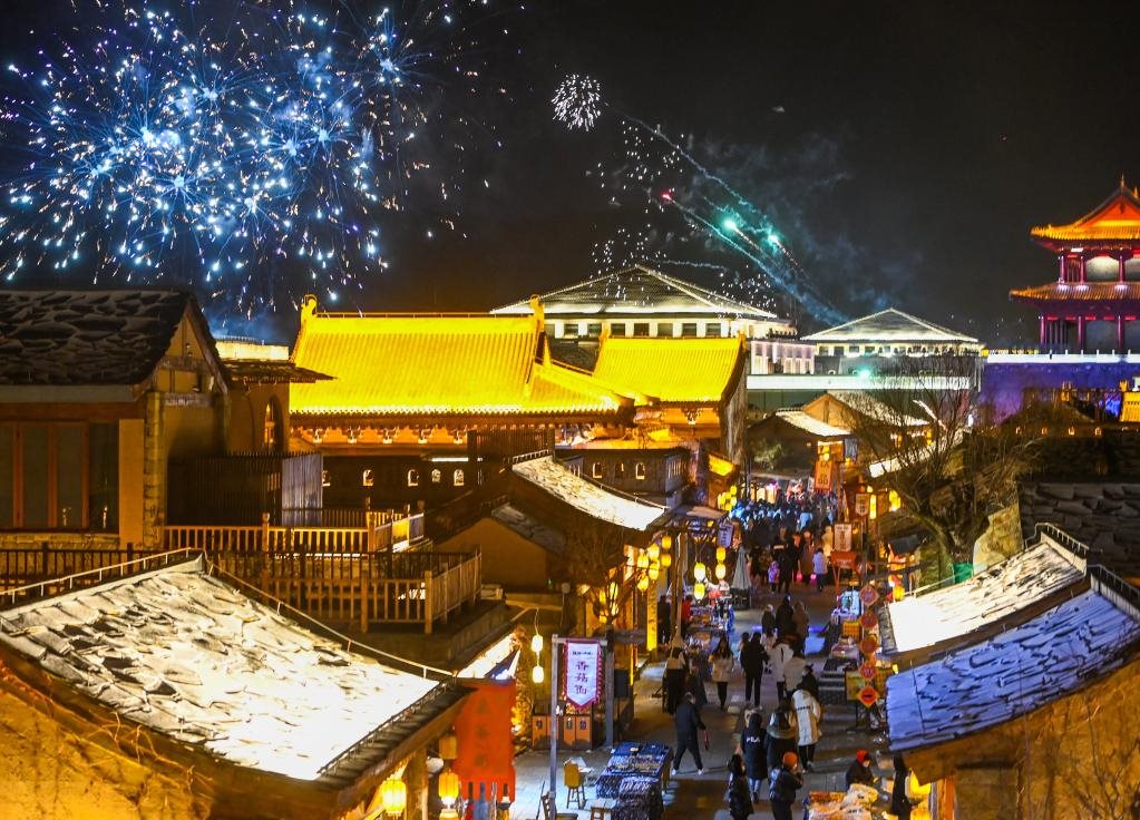 游客在金延安文化旅游產(chǎn)業(yè)園內(nèi)游覽(1月14日攝)。新華社發(fā)(鄒競一攝)
