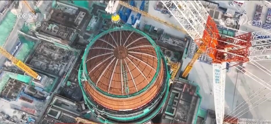 海南昌江:“華龍一號”核電3號機組內穹頂吊裝