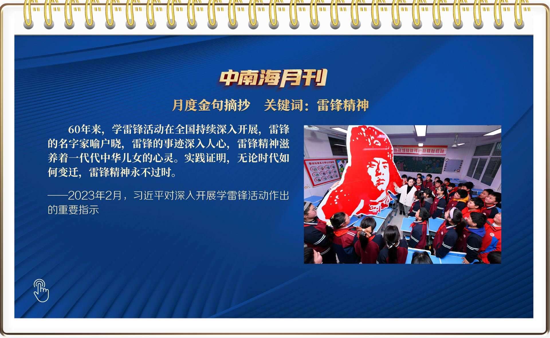 2月“關(guān)聯(lián)人物”中,雷鋒的名字家喻戶曉。在毛澤東等老一輩革命家為雷鋒同志題詞60周年之際,習(xí)近平總書記作出重要指示,一語道出了雷鋒精神的歷史厚度:“實(shí)踐證明,無論時代如何變遷,雷鋒精神永不過時?!?/p>