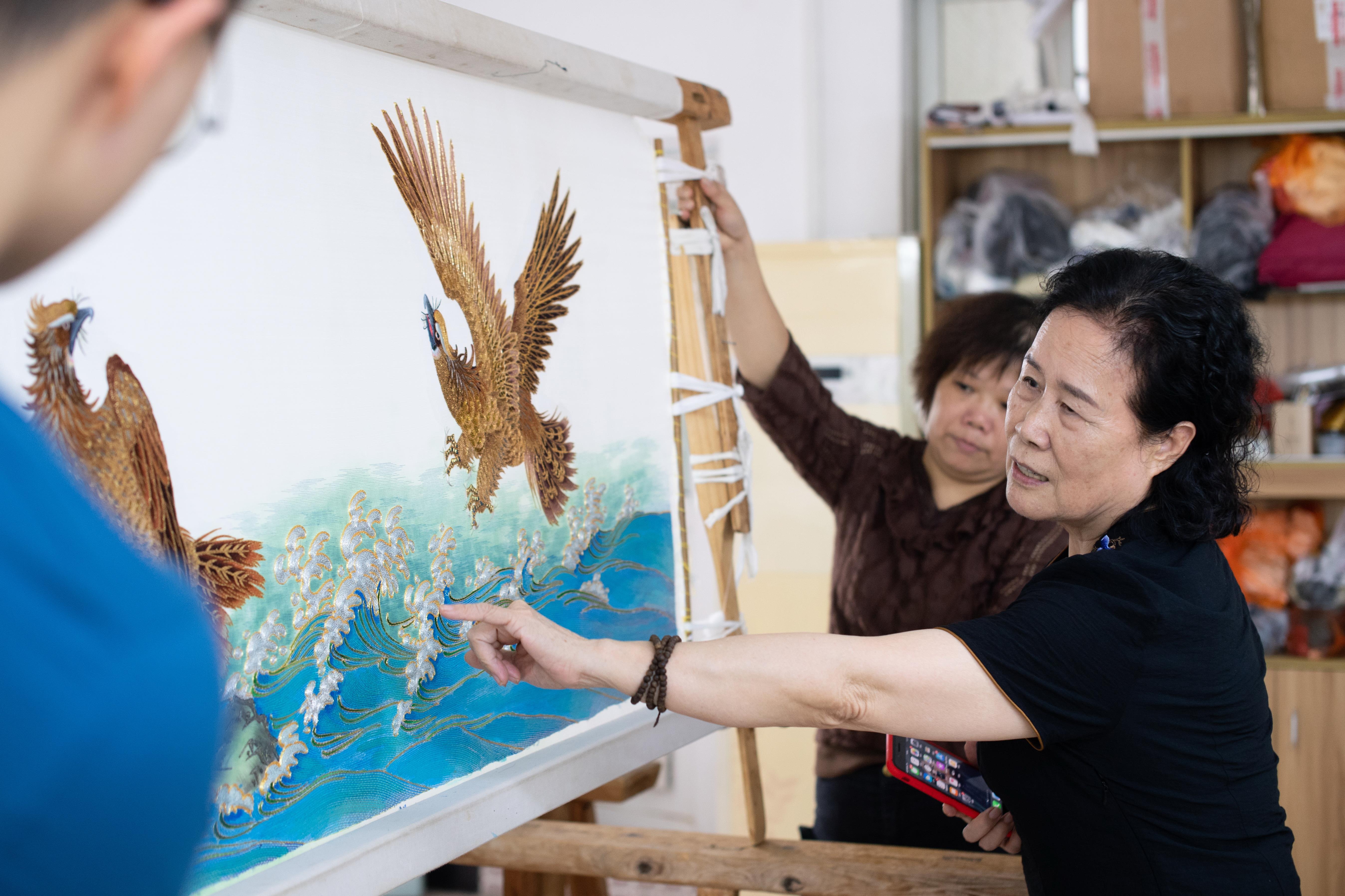 “2015年,我參加了聯(lián)合國舉辦的一個展覽,被授予‘文化大使’的稱號,為潮繡爭了光?!被貞浲簦祷莘加行┘?,“沒有國家的強(qiáng)大,不可能有這樣的舞臺展示我們的民間技藝,衷心感謝國家對我們這些非遺傳承人的重視?!?/p>