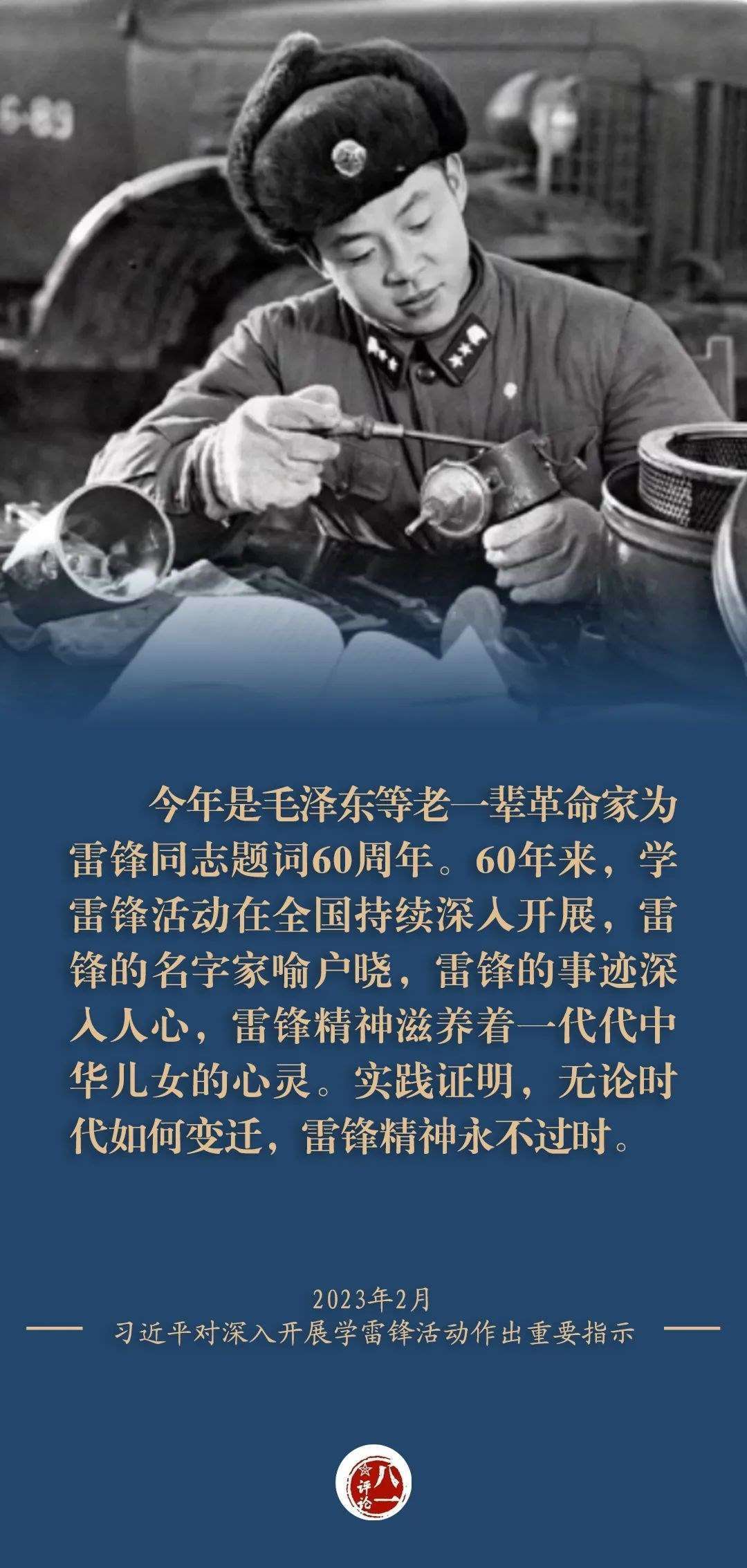 在毛澤東等老一輩革命家題詞60周年之際,習(xí)近平總書記又專門對(duì)深入開展學(xué)雷鋒活動(dòng)作出重要指示,強(qiáng)調(diào)“無(wú)論時(shí)代如何變遷,雷鋒精神永不過時(shí)”,要“讓學(xué)雷鋒活動(dòng)融入日常、化作經(jīng)常,讓雷鋒精神在新時(shí)代綻放更加璀璨的光芒”,為新時(shí)代更好弘揚(yáng)雷鋒精神指明了方向。