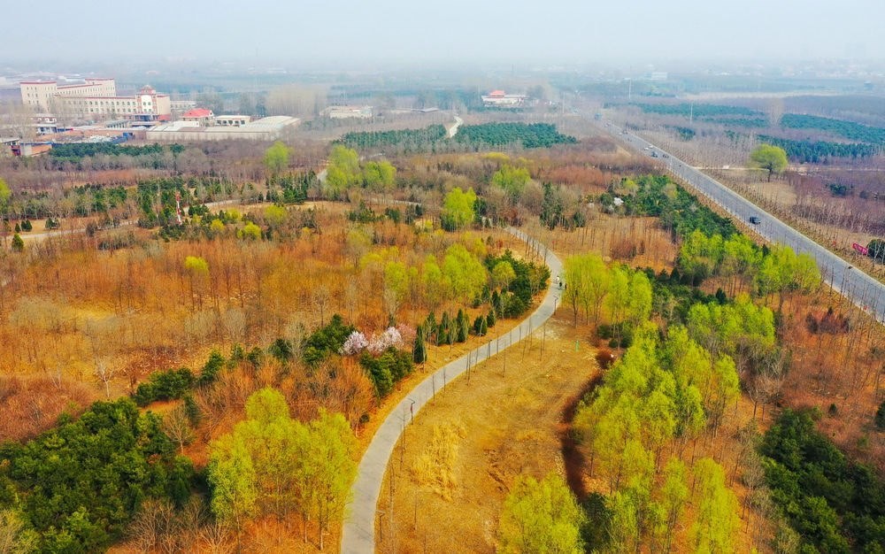 雄安新區(qū)千年秀林(3月20日攝,無人機照片)。截至2022年底,雄安新區(qū)累計造林46.9萬畝,森林覆蓋率由11%提高到34%。