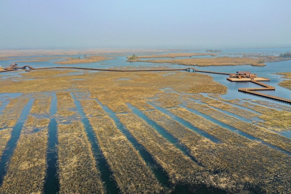 這是3月21日拍攝的白洋淀景區(qū)(無人機照片)。雄安新區(qū)設(shè)立以來,白洋淀經(jīng)過系統(tǒng)性生態(tài)治理,淀區(qū)水質(zhì)穩(wěn)定提升,躋身全國良好湖泊行列。