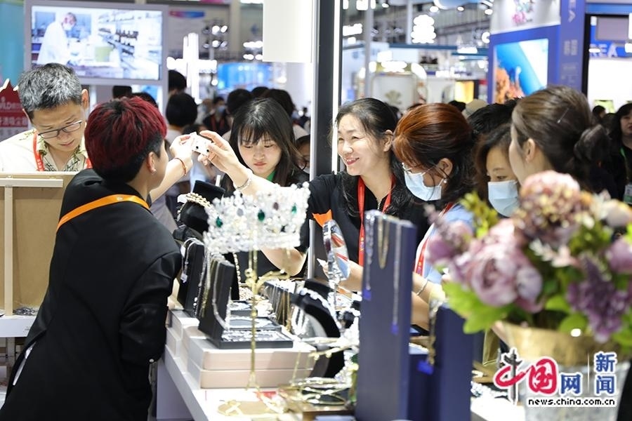 4月11日,工作人員為觀眾介紹耳環(huán)、項(xiàng)鏈等飾品。中國網(wǎng)記者 吳亮 攝