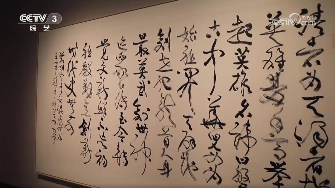 中國(guó)書(shū)法家協(xié)會(huì)草書(shū)專(zhuān)業(yè)委員會(huì)副主任、上海市書(shū)法家協(xié)會(huì)主席 丁申陽(yáng):我的草書(shū)就追求字形要正,但是組合起來(lái)要有變化,還要強(qiáng)調(diào)這個(gè)線條的流動(dòng)感和最近又在研究怎樣把流動(dòng)感里面要有沉穩(wěn)的感覺(jué)。這樣從遠(yuǎn)處看可以相對(duì)來(lái)說(shuō)更有一種現(xiàn)代感的感覺(jué),其實(shí)書(shū)法也是和建筑息息相關(guān)的,而且我覺(jué)得要用舞動(dòng)的線條和下面的江水滾滾的江水也要有一種配合。我覺(jué)得(這里)放書(shū)法也是一種越古老的,也就是越現(xiàn)代的,越民族的也是越是世界的這樣一種概念。海派藝術(shù)就是包容萬(wàn)象,沒(méi)有什么固定的模式。