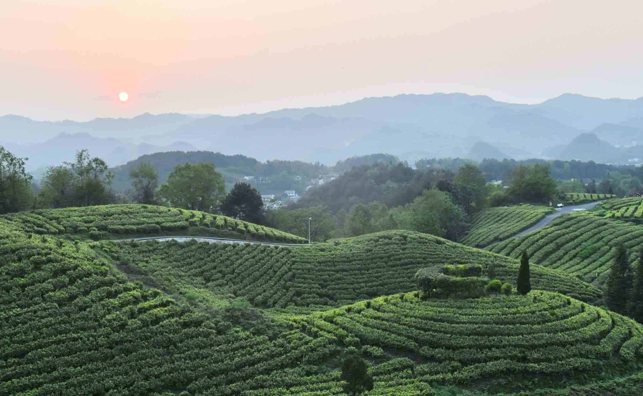 2023年4月14日,貴陽,觀山湖區(qū)朱昌鎮(zhèn)高寨村神鵲茶場,漫山遍野層層疊疊、延綿起伏的茶園綠翠欲滴,茶香四溢,在夕陽的照耀下,呈現(xiàn)出一幅幅美麗的畫卷,令人陶醉其間。視覺中國
