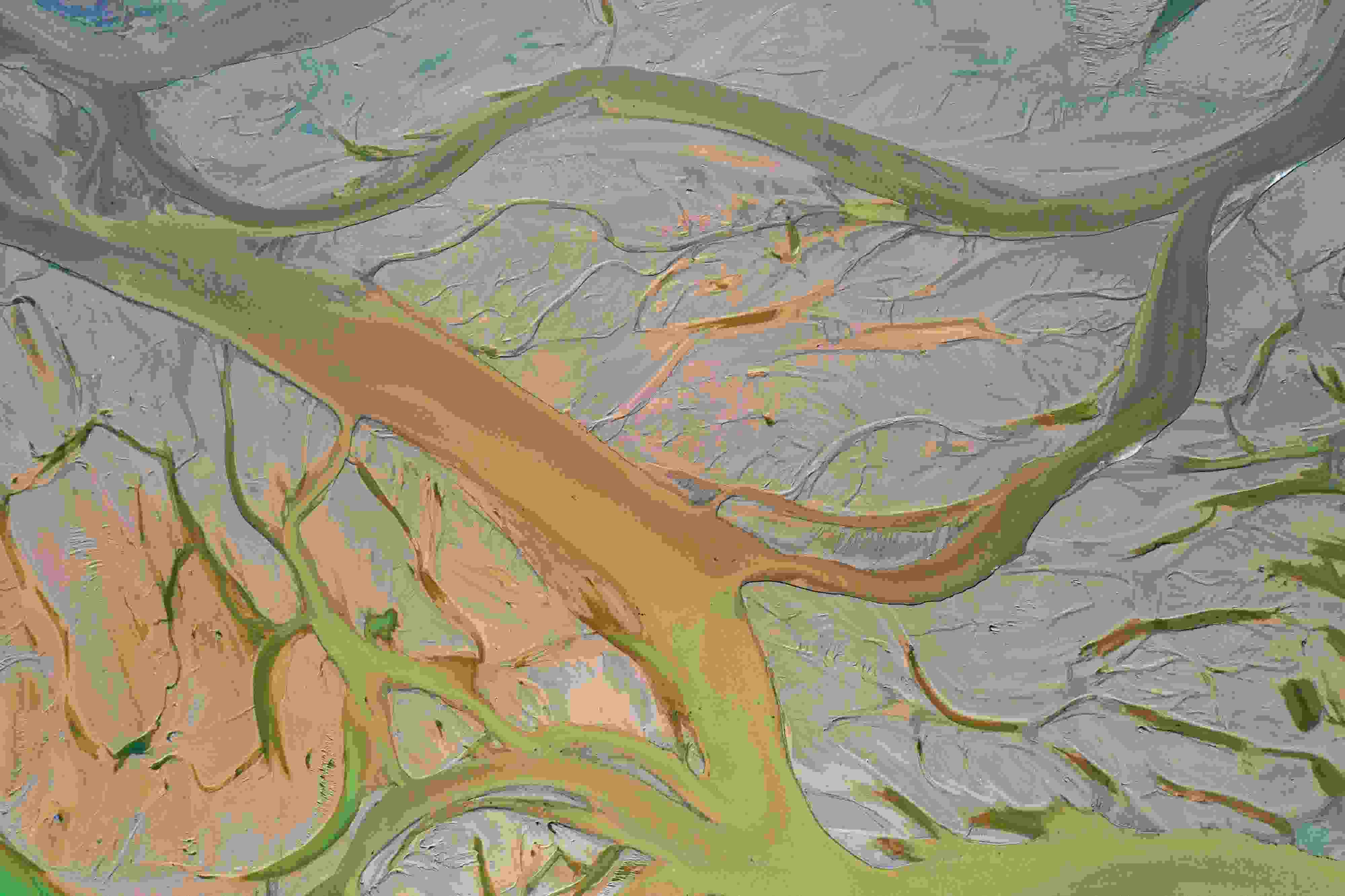 4月16日,山西運城,由于黃河上游降雨和庫區(qū)泄水水量增加,黃河永濟段河床在水流沖刷下河汊縱橫,高空俯瞰宛若“大地血脈”。 視覺中國