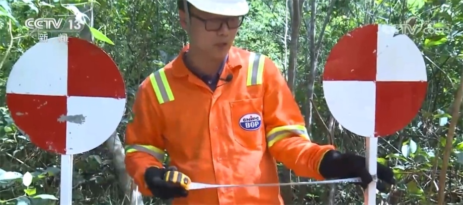 在勘探過程中,工作人員會(huì)用不同顏色的飄帶進(jìn)行標(biāo)記,這種紅色的飄帶是代表保護(hù)樹種,禁止砍伐,藍(lán)色飄帶則指示著項(xiàng)目的路線。這些飄帶全都是用可降解材料制成的,在勘探任務(wù)結(jié)束后,還會(huì)有專門的小組對工區(qū)進(jìn)行垃圾回收和雨林恢復(fù)工作。目前,項(xiàng)目已經(jīng)完成了70%的工作量,預(yù)計(jì)7月中旬可以順利竣工。一年多來,項(xiàng)目多次接受當(dāng)?shù)丨h(huán)保等部門的各項(xiàng)檢查,每一次審計(jì)和檢測都收到了相關(guān)方非常高的評價(jià)。