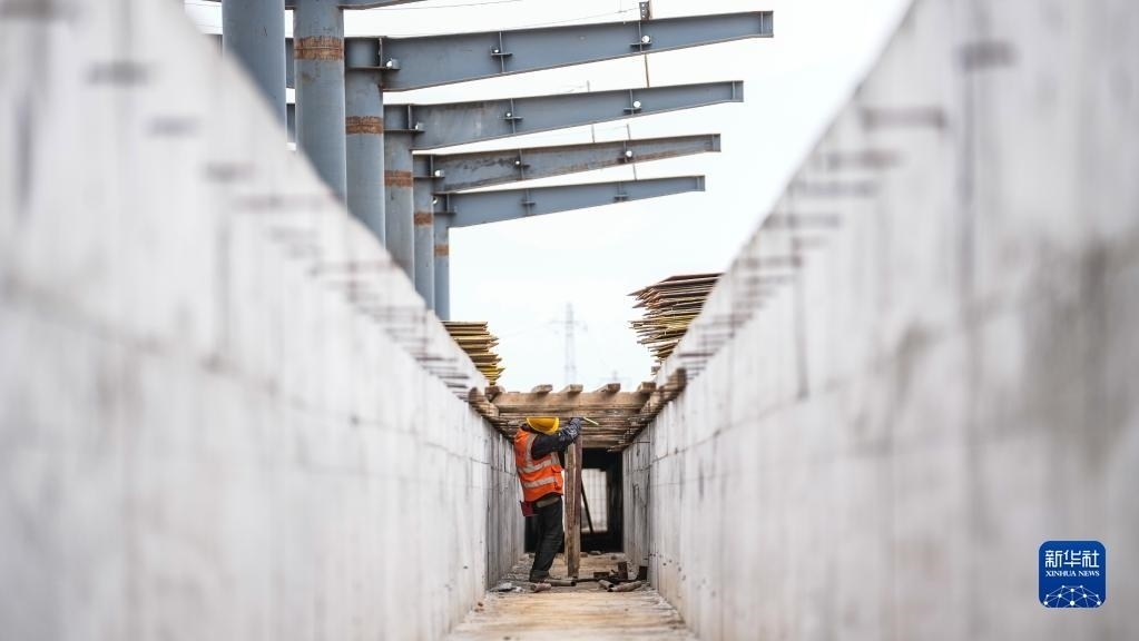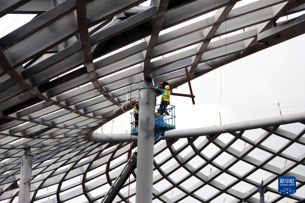 5月1日,中鐵建工集團工人在貴州貴安新區(qū)貴安站擴建項目工地施工。