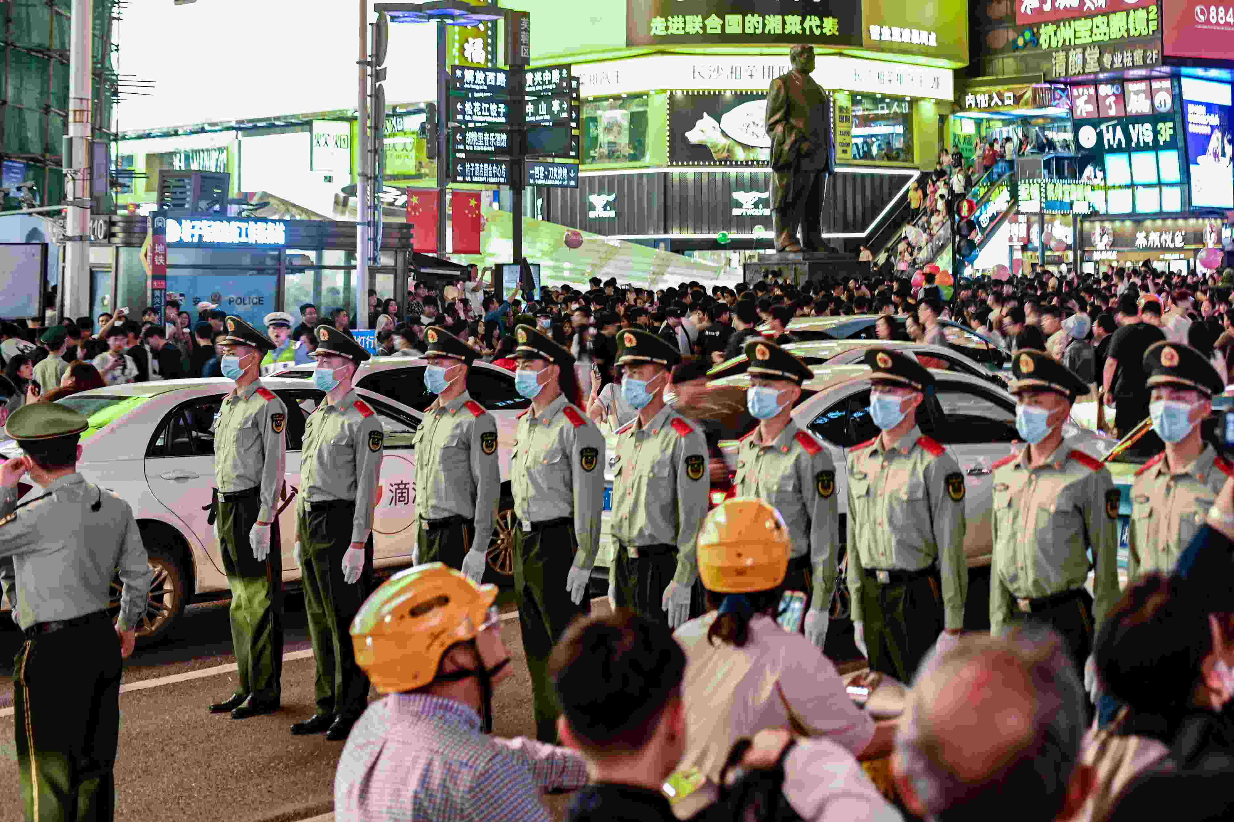 長沙:武警筑起“最美人墻” 守護(hù)游客安全