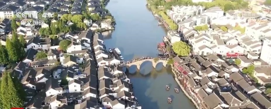 在上海,不少游客來到青浦區(qū)的古鎮(zhèn)朱家角,感受江南的水鄉(xiāng)風(fēng)情。除了看園林、看建筑,還有一系列沉浸式游覽。游客可以坐上小船,也可以走進(jìn)茶樓,感受水鄉(xiāng)風(fēng)情,聽聽評彈,吃江南糕點(diǎn),品上海味道。