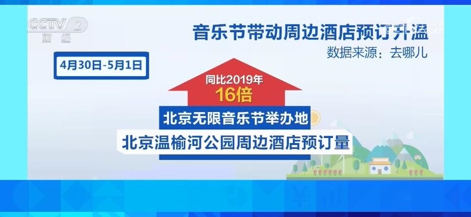 4月29日—5月1日,北京草莓音樂節(jié)舉辦地延慶世園公園周邊的酒店預(yù)訂量,同比2019年增長(zhǎng)18倍。4月30日—5月1日,北京無限音樂節(jié)舉辦地北京溫榆河公園周邊酒店預(yù)訂量,同比2019年增長(zhǎng)16倍。