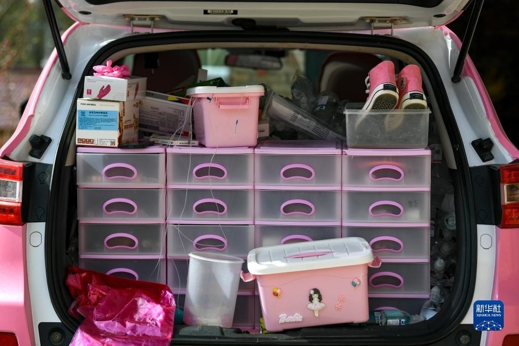 白婳從汽車后備箱里拿出藥品(4月18日攝)。