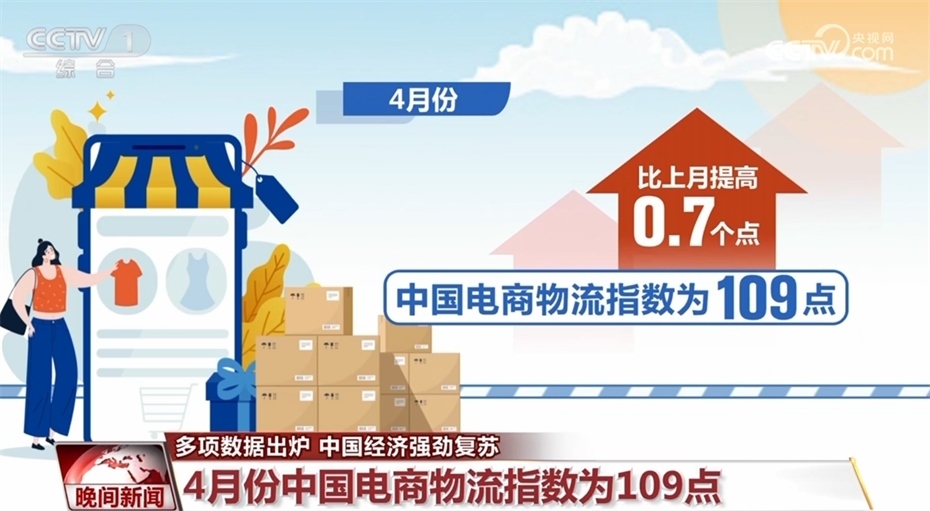 在國內(nèi)消費恢復(fù)帶動下,電商物流指數(shù)也呈現(xiàn)連續(xù)上漲態(tài)勢。4月份中國電商物流指數(shù)為109點,比上月提高0.7個點。電商物流總業(yè)務(wù)量和農(nóng)村電商業(yè)務(wù)量實現(xiàn)連續(xù)4個月上漲,電商物流總業(yè)務(wù)量增幅擴大,農(nóng)村電商總業(yè)務(wù)量增速重回20%以上。