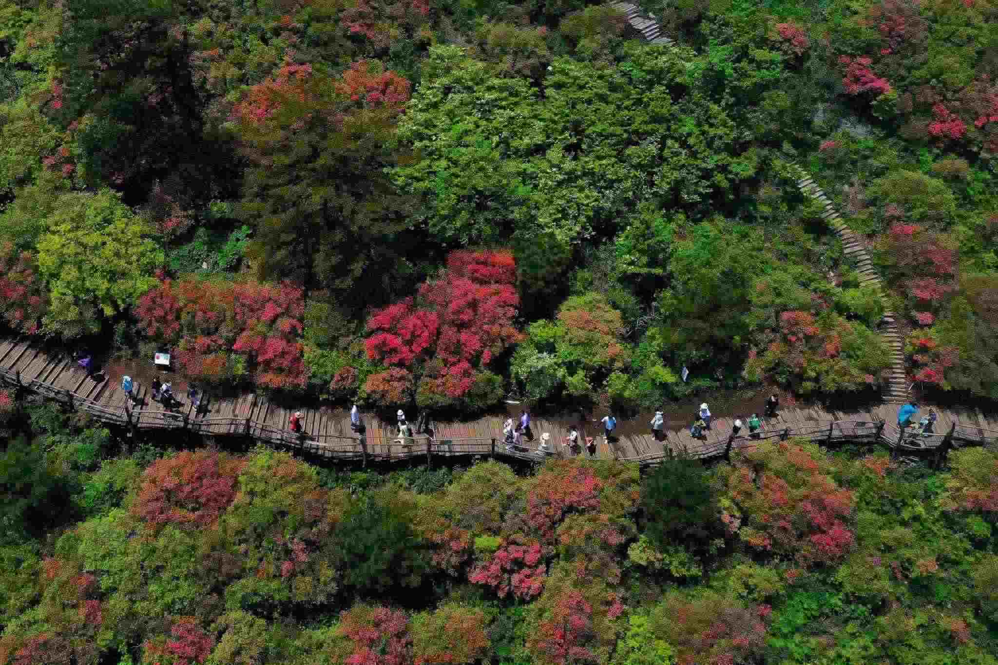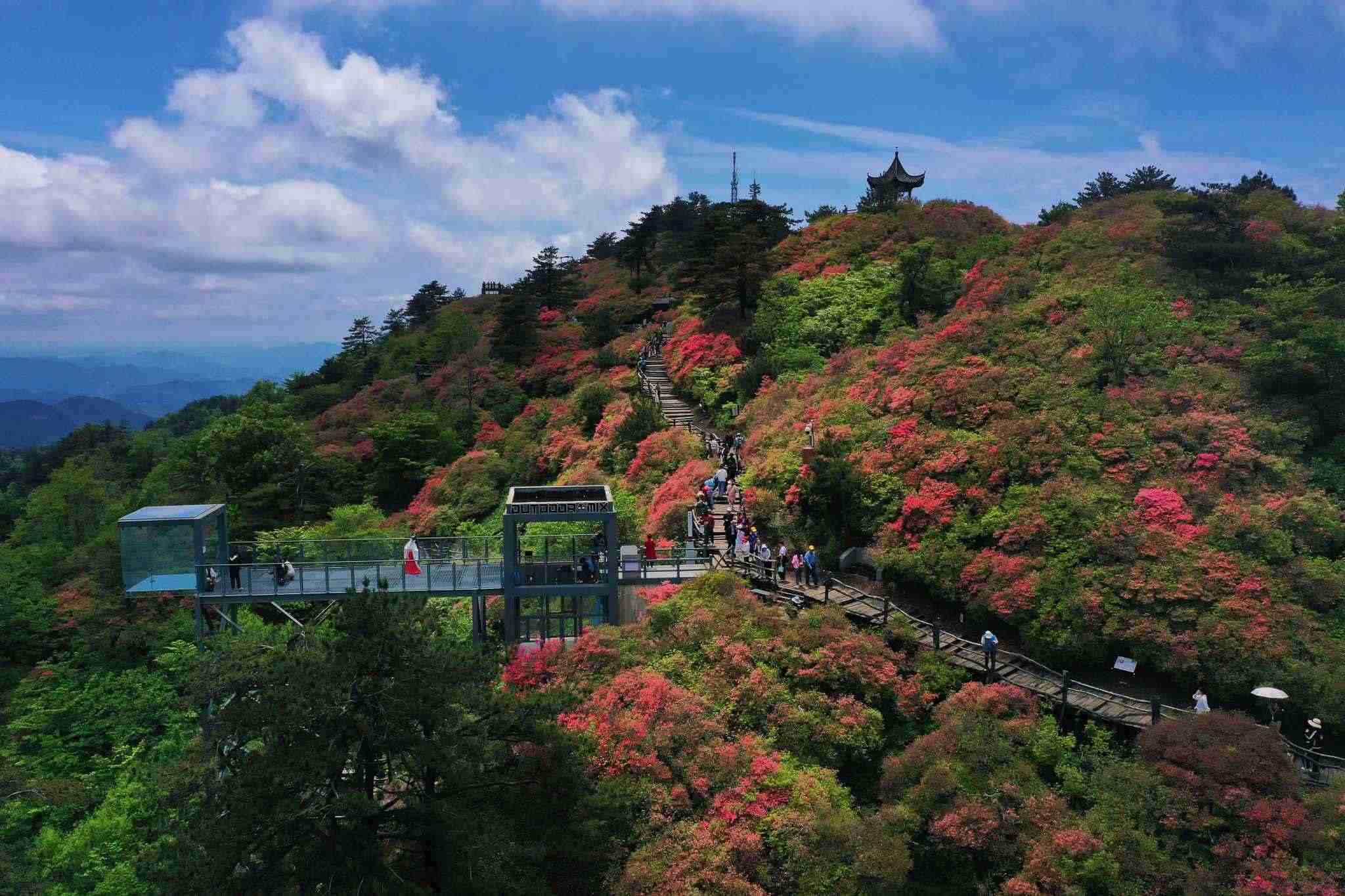 2023年5月5日,湖北黃岡,龜峰山杜鵑花綻放。視覺(jué)中國(guó)