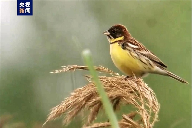 30多只全球極危物種黃胸鹀棲息江蘇靖江馬洲島。