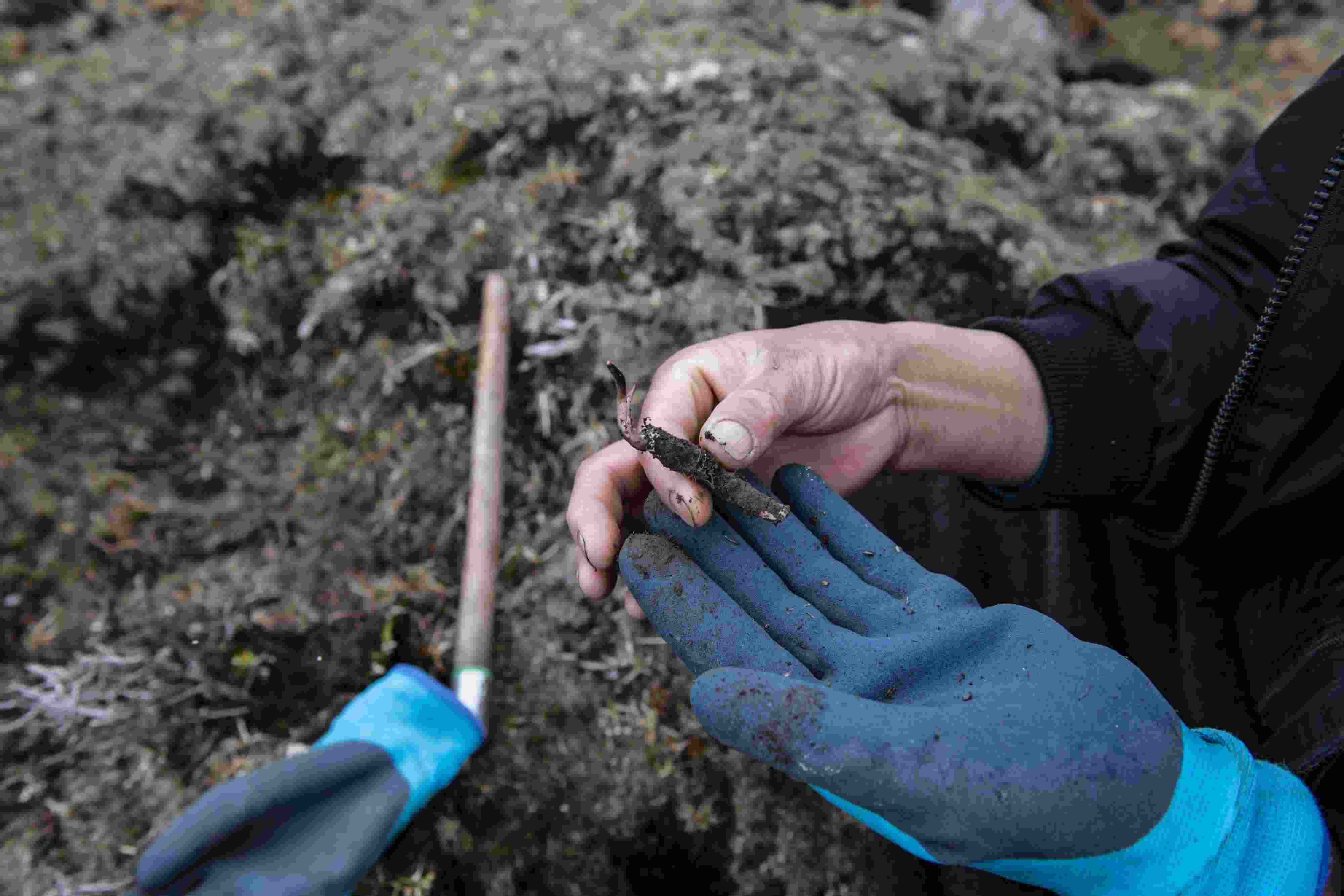 2023年5月7日,西藏山南,加查縣安繞鎮(zhèn)的村民展示采挖到的冬蟲(chóng)夏草。 視覺(jué)中國(guó)