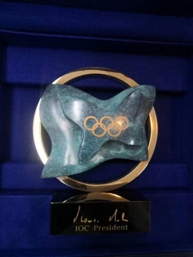 據(jù)介紹,該獎(jiǎng)杯由被譽(yù)為“當(dāng)代米開朗基羅”的西班牙國(guó)寶級(jí)雕塑家Rosa Serra設(shè)計(jì)制作,基座配有現(xiàn)任國(guó)際奧委會(huì)主席巴赫的親筆簽名。該獎(jiǎng)杯以在瑞士洛桑的國(guó)際奧委會(huì)總部大樓“奧林匹克之家”為原型設(shè)計(jì),大樓為和平鴿造型,象征著和平與友誼,是奧林匹克運(yùn)動(dòng)傳遞的最重要信息之一。據(jù)悉,“奧林匹克之家”大樓于2019年6月23日國(guó)際奧林匹克日正式啟用。