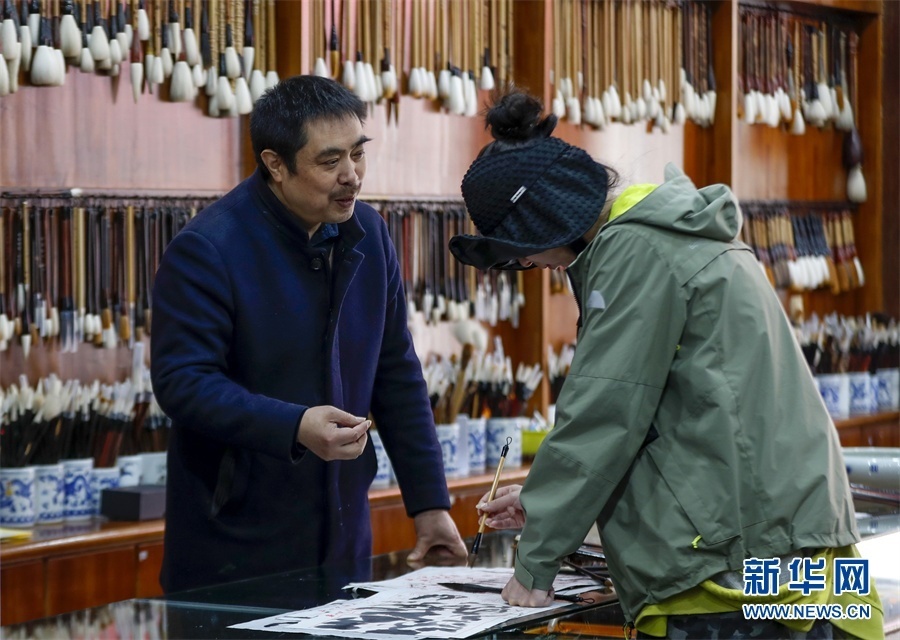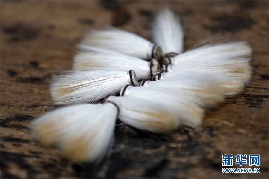 一支好的徽筆,不僅要保留傳統(tǒng)工藝,且要在原基礎(chǔ)上不斷創(chuàng)新、改良。楊文尤其重視書(shū)畫(huà)家對(duì)筆的使用反饋:“因?yàn)樗麄儗?duì)用筆最挑剔,而且現(xiàn)代書(shū)畫(huà)家創(chuàng)作方式和作品不斷創(chuàng)新,對(duì)毛筆也有新的要求,他們提出的要求我總是盡力去滿足,也使得制筆技藝進(jìn)一步得到了提高?!? 新華網(wǎng)發(fā)(施亞磊 攝)