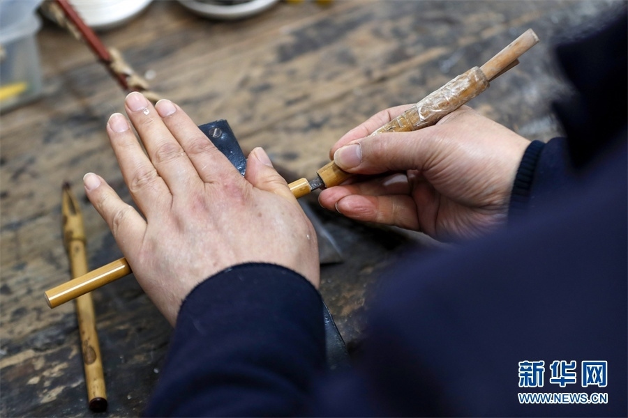 近日,楊文正在制作筆管。