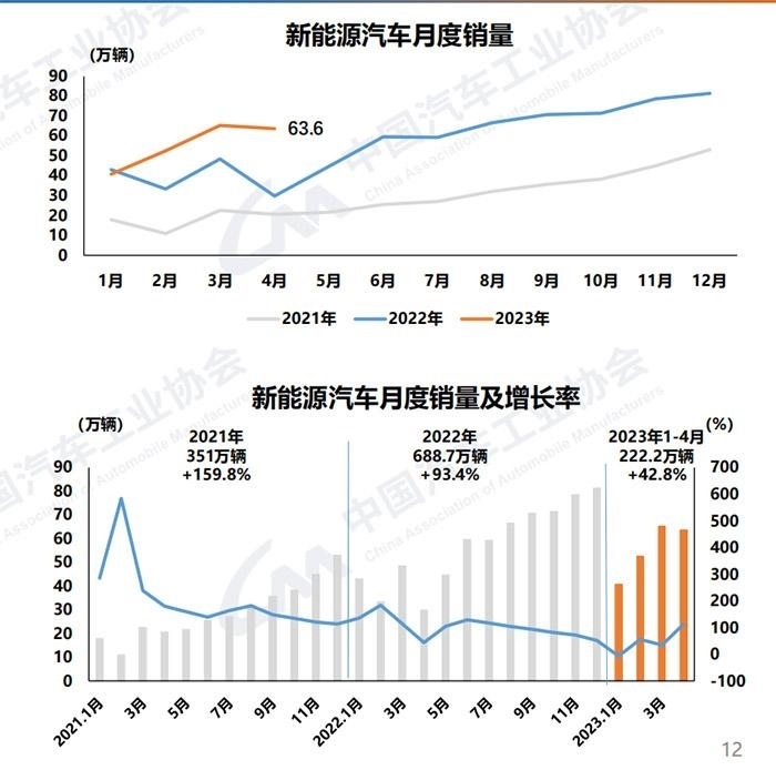 中新網(wǎng)5月11日電 (中新財(cái)經(jīng) 葛成)11日,中汽協(xié)發(fā)布汽車產(chǎn)銷數(shù)據(jù)。2023年4月,汽車產(chǎn)銷分別完成213.3萬輛和215.9萬輛,同比分別增長(zhǎng)76.8%和82.7%;新能源汽車產(chǎn)銷分別完成64萬輛和63.6萬輛,同比均增長(zhǎng)1.1倍;汽車企業(yè)出口37.6萬輛,同比增長(zhǎng)1.7倍。