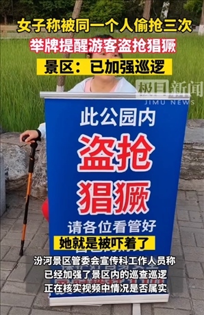 ·景區(qū)回應(yīng)女子舉牌提醒公園盜搶猖獗:正在核實(shí),已加強(qiáng)巡邏。