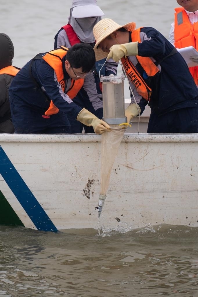 圖為監(jiān)測人員正在采集浮游動(dòng)物樣本。新華社記者肖藝九 攝